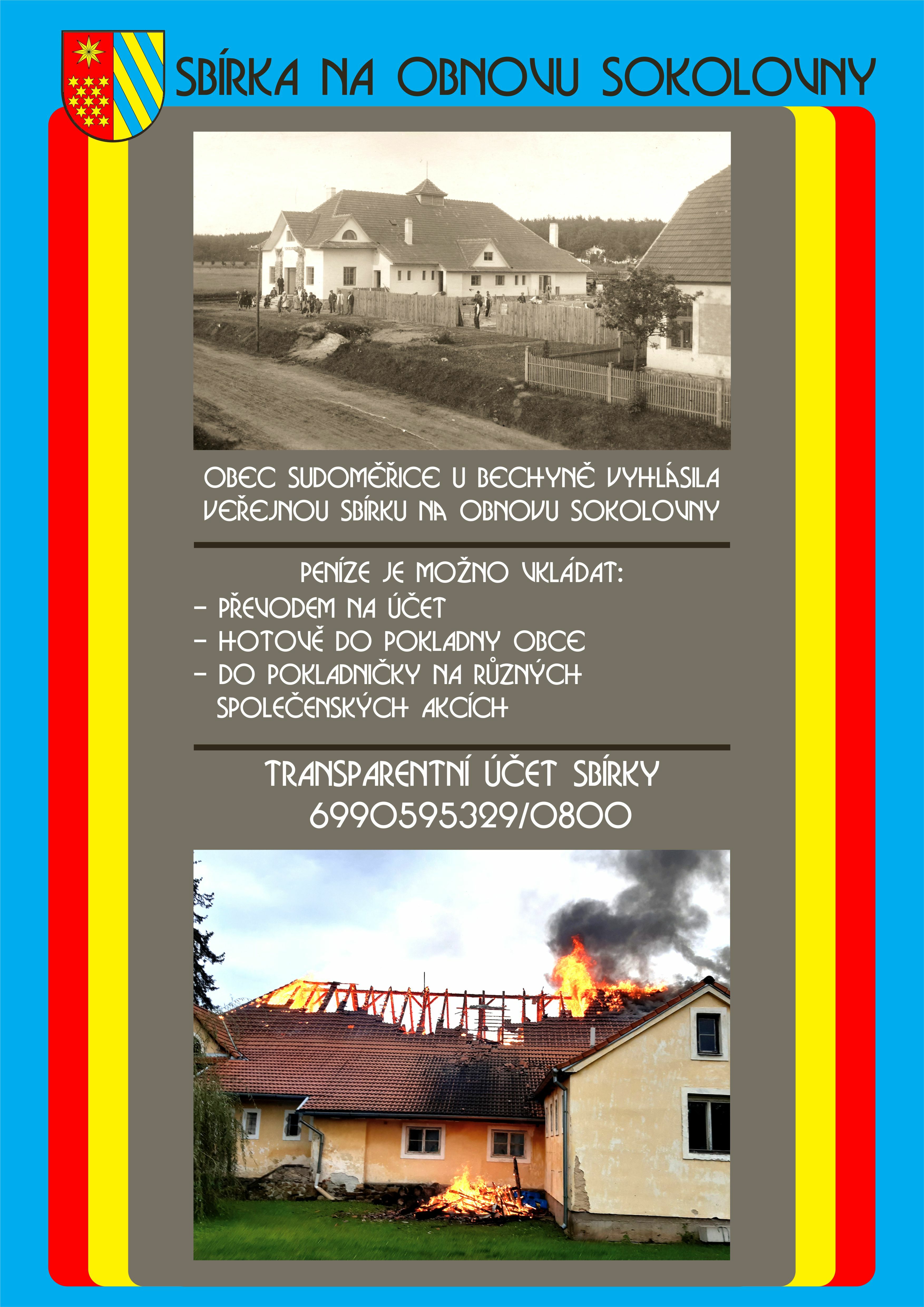 Sbírka na obnovu Sokolovny Obec Sudoměřice u Bechyně vypsala sbírku na obnovu Sokolovny. https://www.csas.cz/cs/transparentni-ucty#/000000-6990595329/Obec-Sudomerice-u-Bechyne